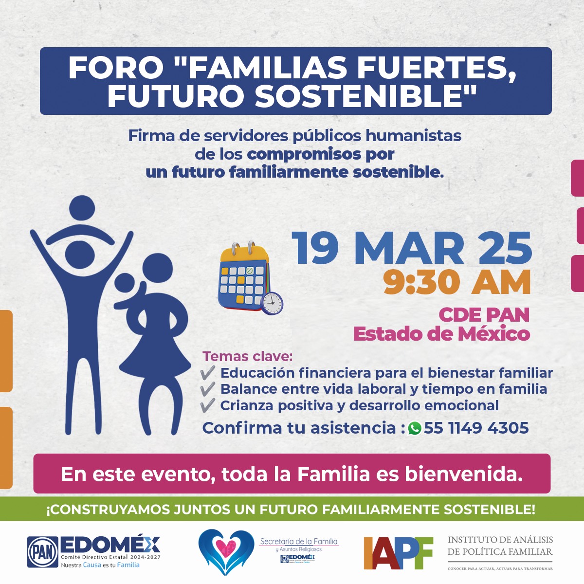 Firma de servidores públicos humanistas de los compromisos por un futuro familiarmente sostenible. Temas clave: - Educación financiera para el bienestar familiar - Balance entre vida laboral y tiempo en familia - Crianza positiva y desarrollo emocional Confirmación de asistencia: 55 1149 4305